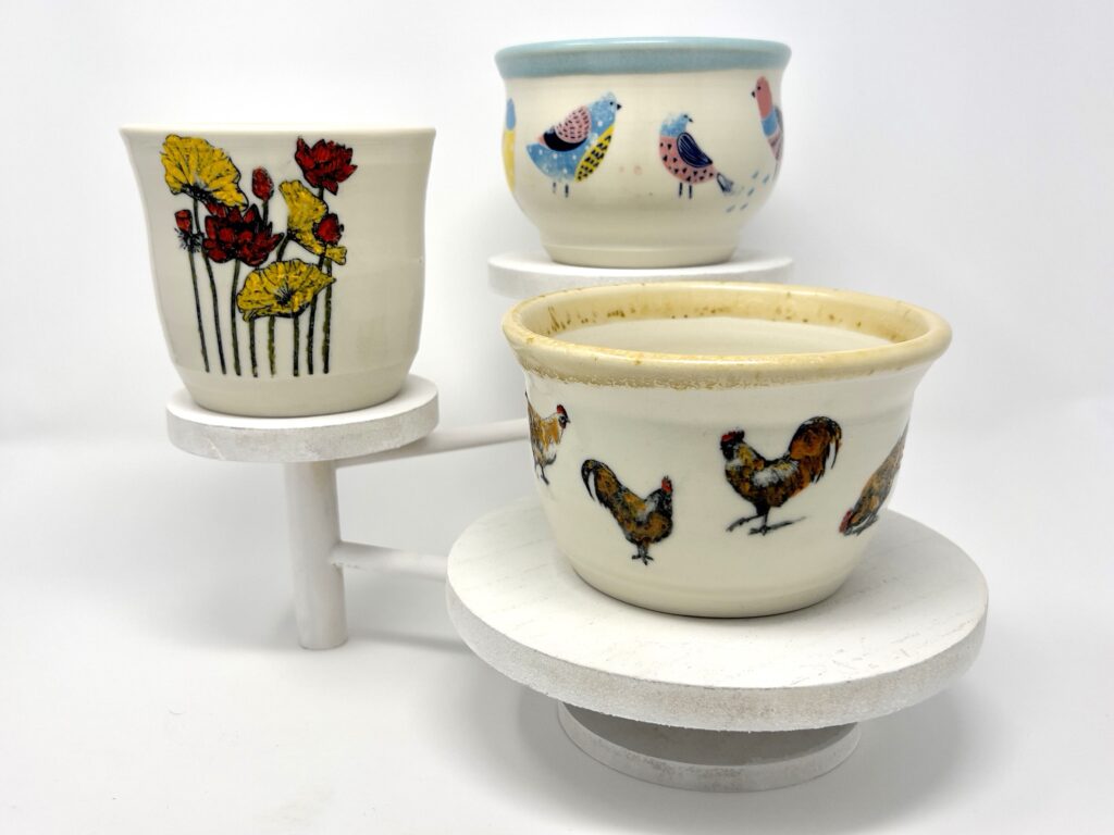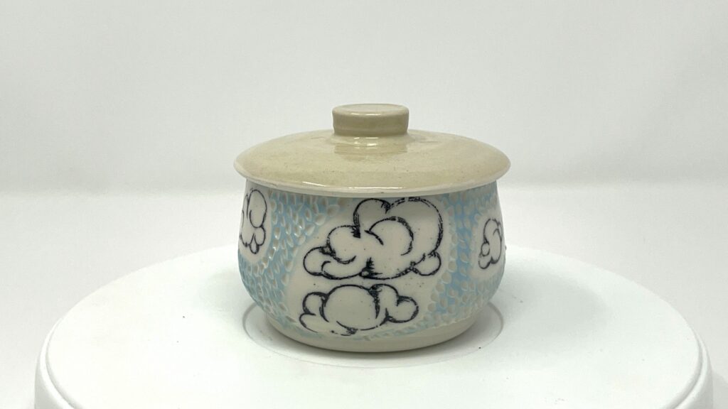 She is inspired by nature and tries to incorporate it in her designs. She works with porcelain and stoneware clay that is dishwasher and microwave safe. The name of her business is a nod to her mother. She moved to the USA in 1955 when she married Deborah’s dad after he was discharged from the Navy. Deborah’s great grandfather was a potter in Japan. Although she never knew him, she hopes that she has some of his DNA coming through her pottery.