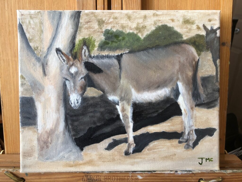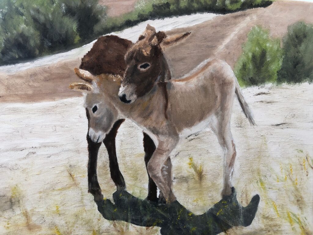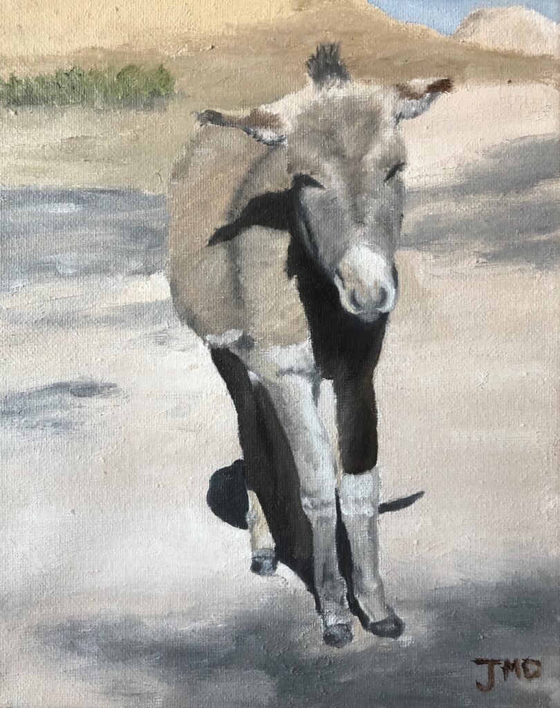 He’s recently enjoyed visiting with the wild burros in Reche and San Timoteo canyons. “Burros have become the major subjects of my painting. They are sweet, friendly animals who are quick to warm up and interact with you, especially if you offer them carrots! Their coloration is also really quite unique.