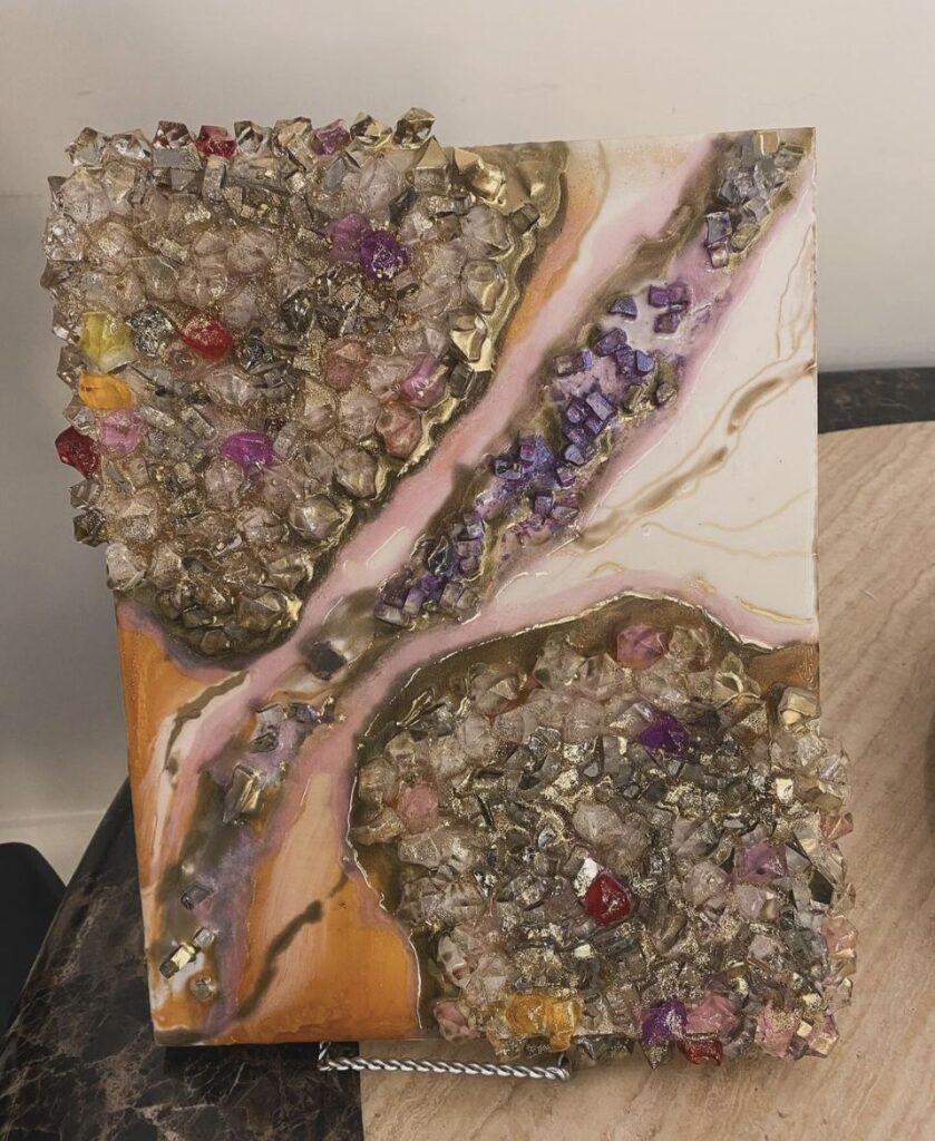 About a year ago, Orly discovered epoxy resin, and it completely transformed her creative journey. She became enthralled by the mesmerizing process—the way colors blend, flow, and capture light. By combining resin with real gemstones, she elevates each piece into a high-frequency work of art that brings positive energy and serenity into any space, whether at home or in the office.