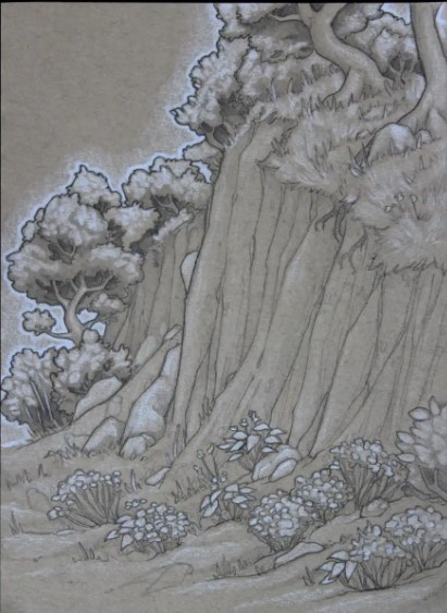 “I hope my simple graphite and charcoal scenes gently ask viewers to dwell in the serenity and variety of nature.”